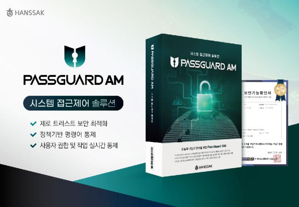 한싹 ‘패스가드 AM’은 복잡한 IT 인프라 환경에서 사용자 접근 권한을 관리하고 통제하는 시스템 보안 솔루션으로, 제로 트러스트 보안 모델 구현에 최적화된 기능을 갖추고 있다.