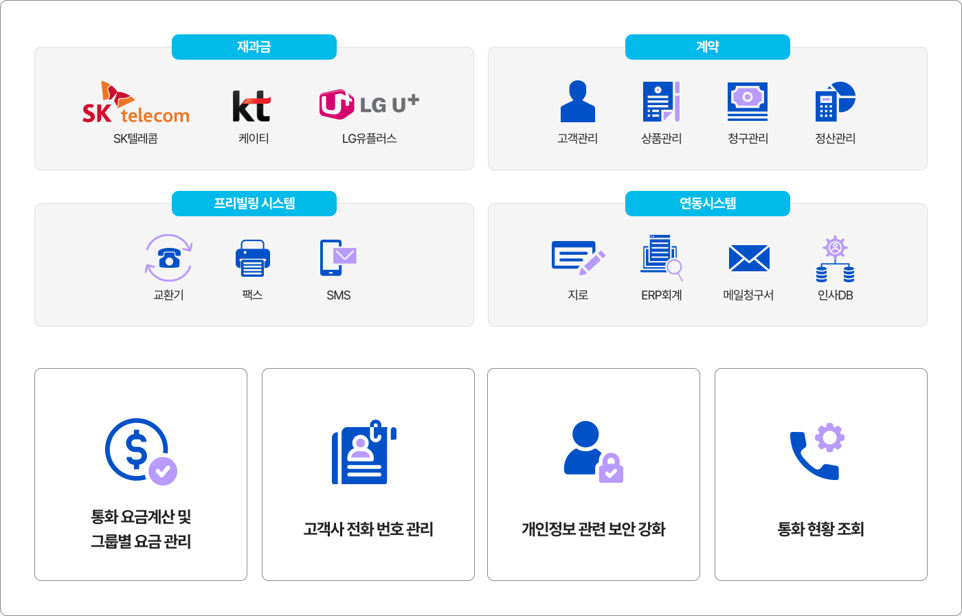 • 기본료, 이용료, 임대료, 변경비 등 다양한 요금 항목에 대한 유연한 과금
